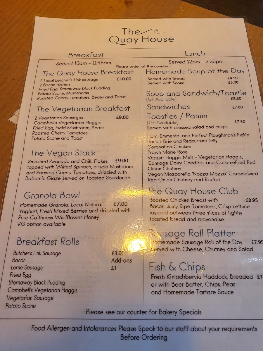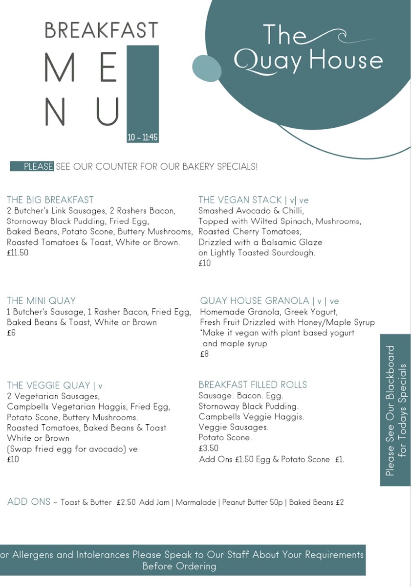 The Quay House offers a straightforward café menu that focuses on familiar, comforting dishes and casual bites, designed to suit both leisurely mornings and relaxed afternoons by the harbour. Whether settling in for a full breakfast or stopping by for a warm drink paired with homemade treats, there’s a thoughtful simplicity to the offerings that complements the cozy, welcoming atmosphere.